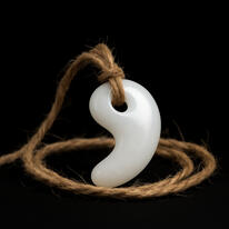 A milky-white magatama threaded onto a simple twine.